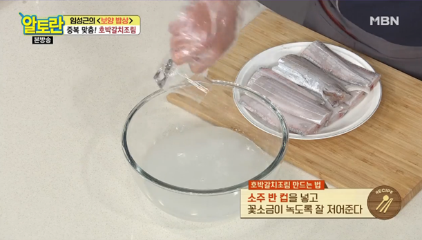 4. 이렇게 완성된 염지물에 갈치를 30분간 담가두면 돼요.