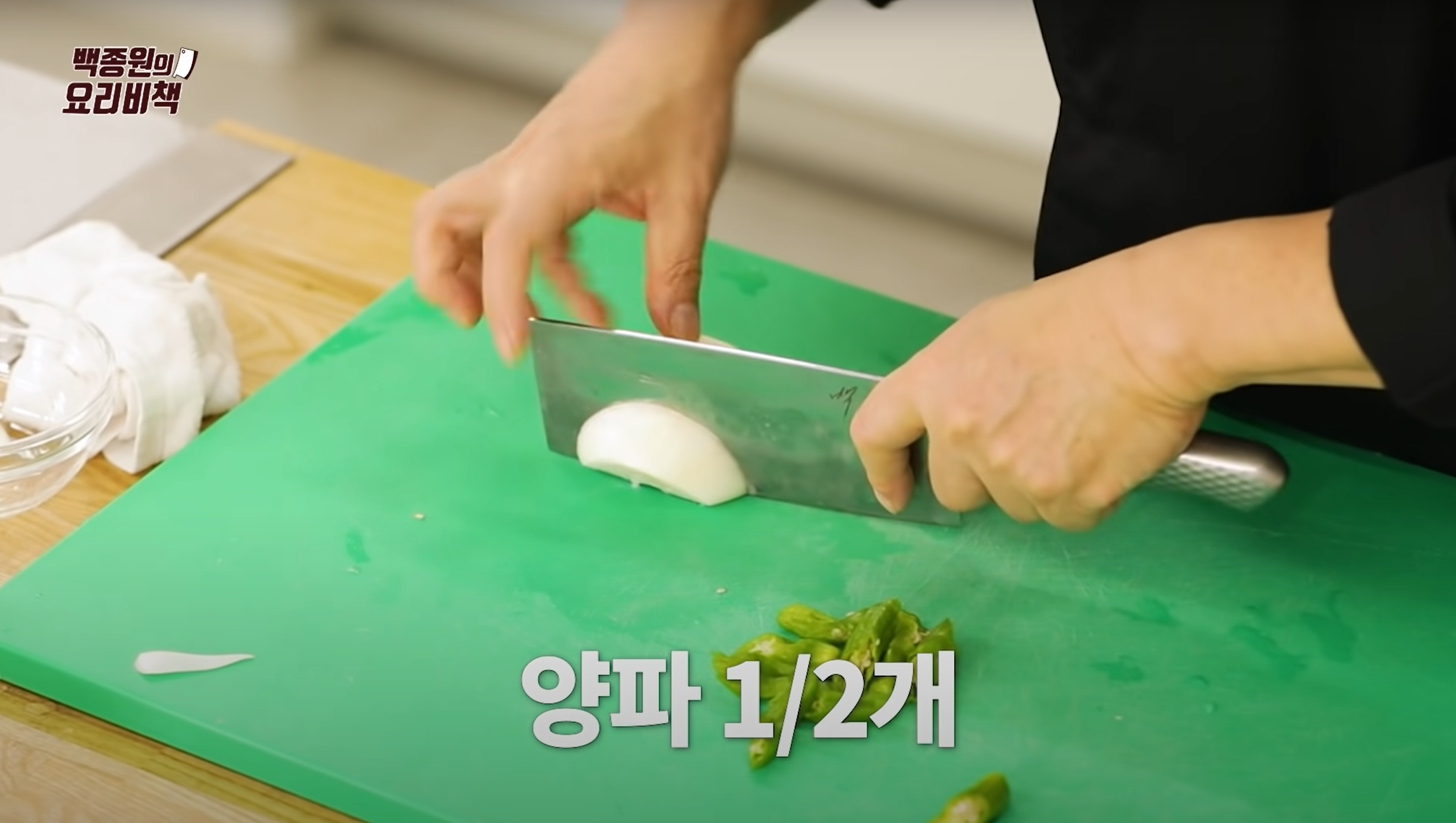 3. 꽈리고추는 3~4등분으로 자르고 양파는 사방 2cm 깍둑썰기 합니다. 꽈리고추가 없으면 그냥 고추나 청양고추로 하셔도 괜찮습니다.