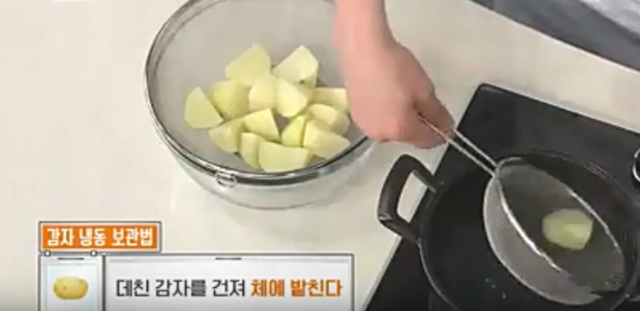 말하자면 감자를 데치는건데요, 이렇게 하면 수분이 빠져 냉동 보관 기관이 늘어난다고 합니다.