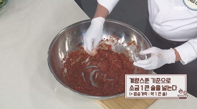 7. 여기에 소금 1큰술도 넣습니다.