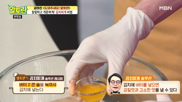 4. 버터 2 큰 술을 녹여서 김치에 넣어주세요. 버터를 넣게 되면 감칠맛이 올라오는데요, 김치찌개 전문점에서 먹으면 고소한 맛이 살짝 풍기는게 바로 버터의 맛이라네요.