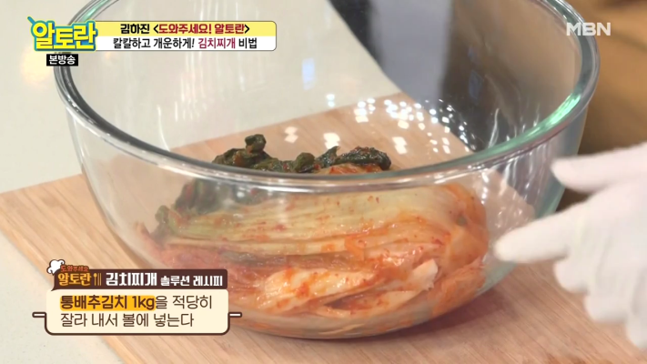 1. 잘 익은 통배추김치 1kg을 속만 털어내서 준비해 주세요.
