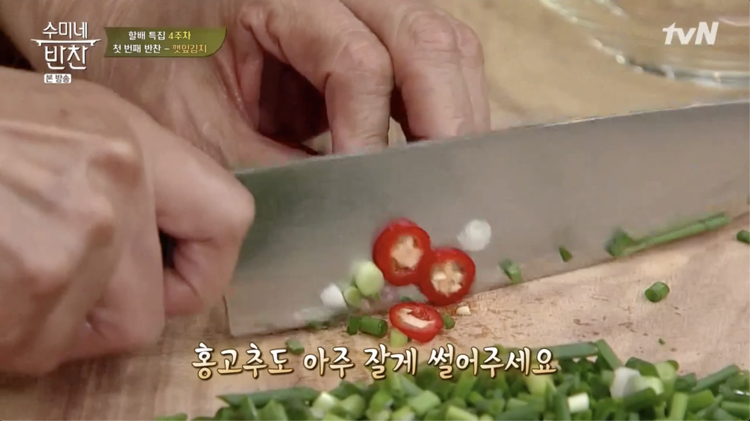 쪽파는 다져서 준비해주시고 홍고추는 씨를 제거하고 입자가 보이게 다져서 준비합니다.