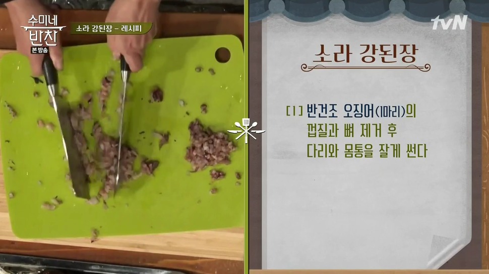 ② 오징어의 식감을 살리기 위해서는 믹서기에 갈지 말고 직접 손으로 다지는 것이 좋다고 해요.