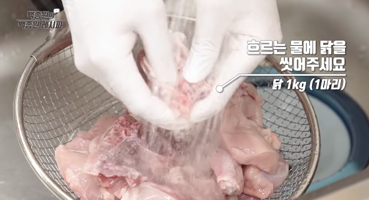 닭은 내장 쪽에서 특히 잡내가 날 수 있으니 주의하여 세척하는 것이 좋다고 해요. 이번 닭볶음탕 황금레시피에서는 닭고기 10호를 사용하는데 1KG 내외를 10호라고 합니다.