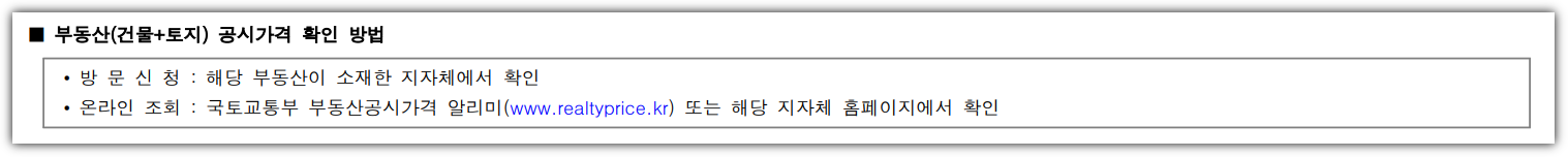 부동산 공시가격 확인을 위해서는 2가지 방법이 있는데요, 해당 부동산이 소재한 지자체에 직접 방문해도 되고, 국토교통부 부동산공시가격 알리미 또는 해당 지자체 홈페이지에서 확인할 수 있습니다.