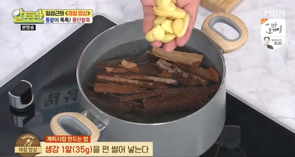 ③생강 1알(35g)을 편 썰기해서 넣어 끓이는데 끓기 시작하면 중불로 줄인 후 30분 정도 더 끓여 주면 됩니다.