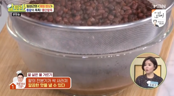 ④팥을 체에 밭쳐 삶은 물을 걸러주시는데요, 동지팥죽 만드는법 임성근 팥죽 쉽게 만드는 법 황금레시피의 숨은 팁이라고 볼 수 있어요. 이렇게 하는 이유는 팥의 전분기가 싹 사라져 텁텁한 맛을 제거해 주기 때문이라고 하네요.
