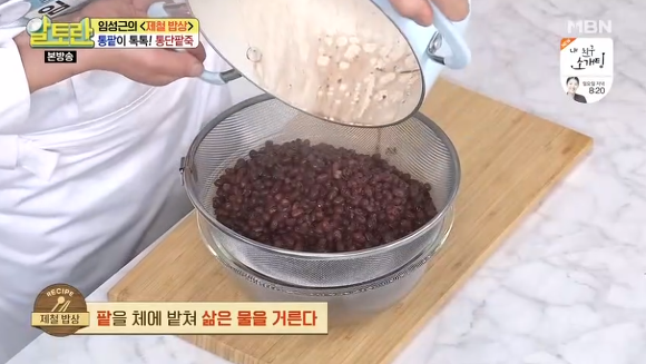 ④팥을 체에 밭쳐 삶은 물을 걸러주시는데요, 동지팥죽 만드는법 임성근 팥죽 쉽게 만드는 법 황금레시피의 숨은 팁이라고 볼 수 있어요. 이렇게 하는 이유는 팥의 전분기가 싹 사라져 텁텁한 맛을 제거해 주기 때문이라고 하네요.
