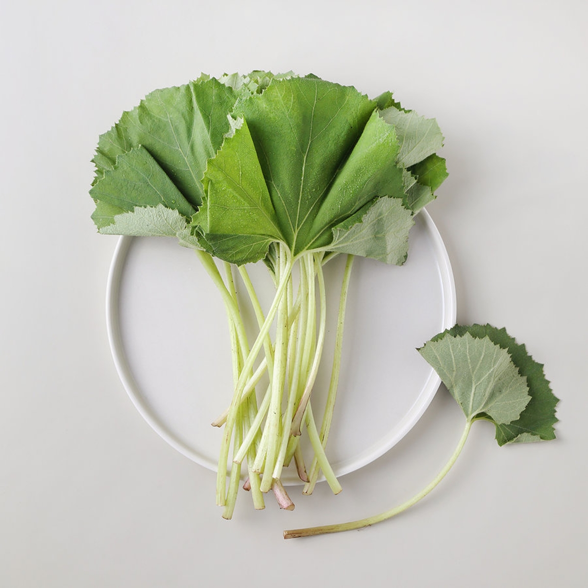 머위를 고를 때는 너무 굵거나 가늘지 않은 것을 선택합니다. 성인 여성의 새끼손가락 굵기에 대가 곧게 뻗고 길이는 50~60cm 정도 되는 것이 가장 좋은 머위라고 해요. 또한 색이 진하고 부드러운 쪽이 앞면이며, 표면이 거칠면서 줄기가 선명한 쪽이 뒷면인데요, 데치는 목적이라면 손바닥보다 작은 머위를 선택하는 것이 좋습니다.