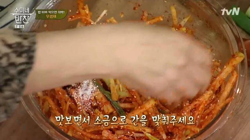 무생채 맛있게 하는법 김수미 무생채 황금레시피는 너무 간단해서 정말 10분도 안걸려 완성되는 요리인 것 같아요. 하지만 그 맛은 어느 반찬과 비교해도 뒤지지 않죠.