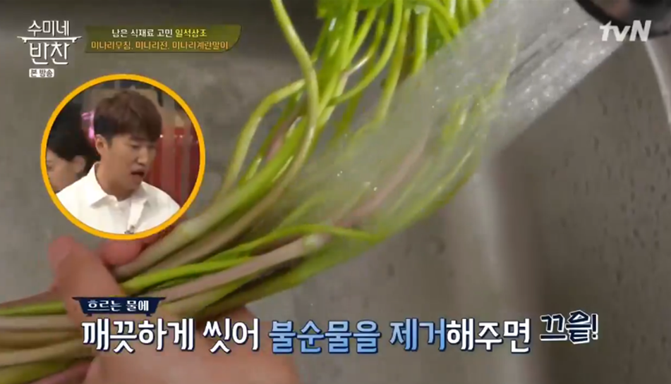 3. 미나리 이파리와 식감이 억센 줄기 끝부분은 잘라서 '미나리전'에 활용해도 좋다고 하네요.