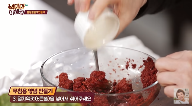 3. 멸치액젓 6큰술 넣어서 섞어줍니다.