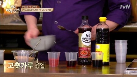 국간장 : 액젓 : 고춧가루 = 1 : 1 : 1 비율
