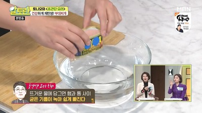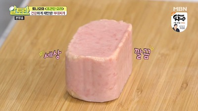 여기서 통조림 햄 꺼내는 꿀팁 하나를 공개해 주셨는데, 통에서 햄을 꺼내기 힘들 땐 10초 정도 통조림을 데운 뒤에 꺼내면, 기름 성분이 녹아서 쏙 잘 빠진다고 하네요.