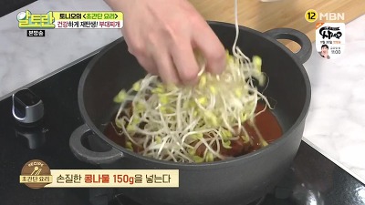 6. 여기에 손질한 콩나물 한 줌(150g)과 양념장도 넣구요.