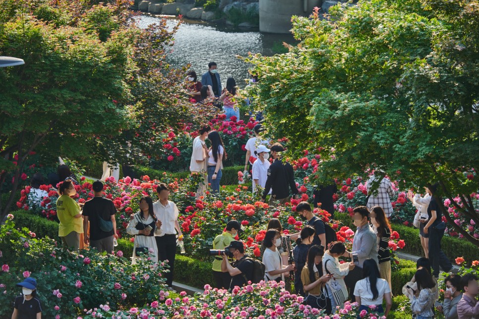 음료나 비누, 액세서리 등 장미와 관련된 다양한 제품을 판매하는 ‘장미 마켓’ 부스도 함께 마련될 예정이며 중랑천을 바라보며 장미 전경을 즐길 수 있는 전망데크와 포토존, 야간LED 조명 등도 색다른 재미를 선사할 예정이라고 하네요.