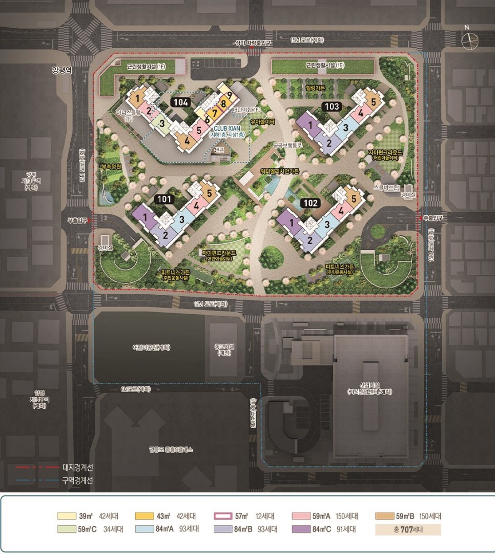 영등포 자이 디그니티 단지는 지하 2층~지상 35층, 4개동, 총 707가구이며 이 가운데 전용면적 59·84㎡ 185가구를 분양할 예정입니다. 전용면적 별로 살펴보면 59㎡ 83가구, 84㎡ 102가구 등인데 주로 수요자 선호도가 높은 주택형으로만 구성된다고 볼 수 있습니다.