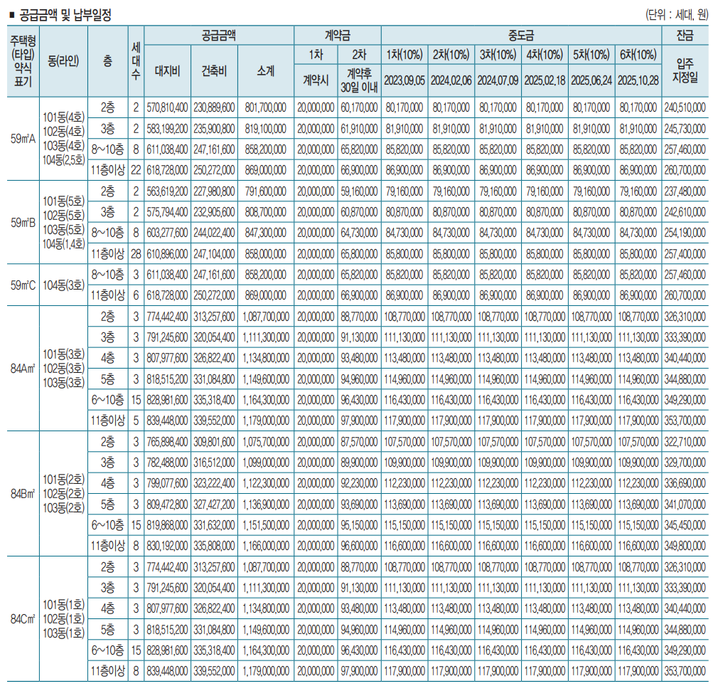 영등포 자이 디그니티 옵션 미포함 분양가는 전용59㎡ 8억6000만원대, 84㎡ 11억7000만원대로 정리할 수 있으며 계약금은 분양가의 10%로 정당계약시 1차 계약금 2000만원(정액제)을 내고 30일 이내에 나머지 금액을 납부하여야 합니다. 중도금 60%에 대해서는 이자 후불제가 적용되니 참고하시기 바랍니다.