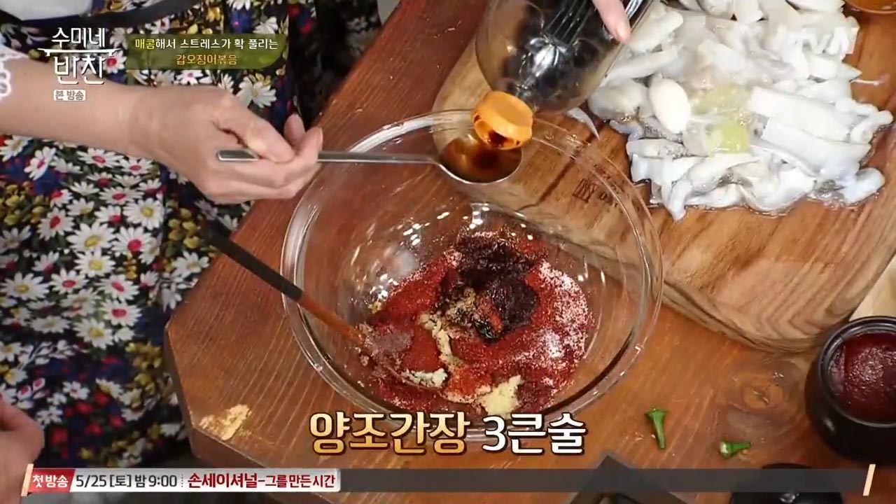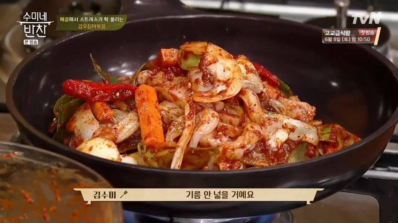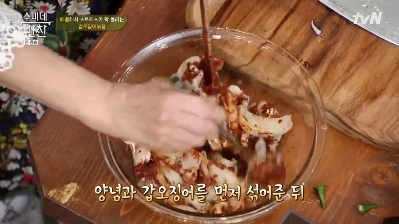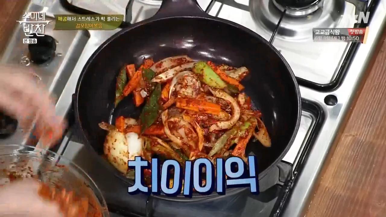 오징어는 한의학적으로 기운을 보하고 혈액순환을 촉진해 심장, 간, 신장 강화에 도움이 되는 음식으로 알려져 있습니다. 오징어의 먹물도 혈액이 한 곳에 정체되는 증상인 어혈을 푸는 약으로서 활용돼 왔을 정도로 효능또한 뛰어난 식재료인데요, 오징어 볶음 맛있게 만드는법 김수미 황금레시피 따라해 보세요.