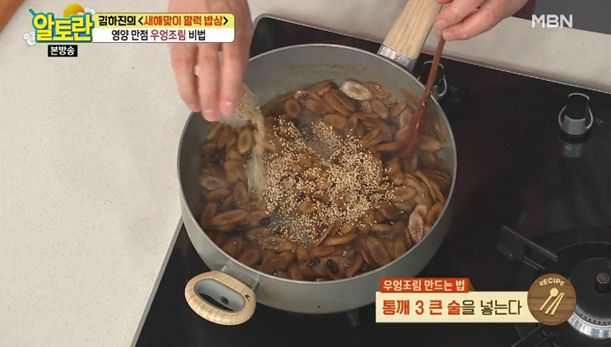 18. 마지막으로 통깨 3큰술 넣으면 우엉조림 맛있게 하는법 황금레시피가 완성됩니다.