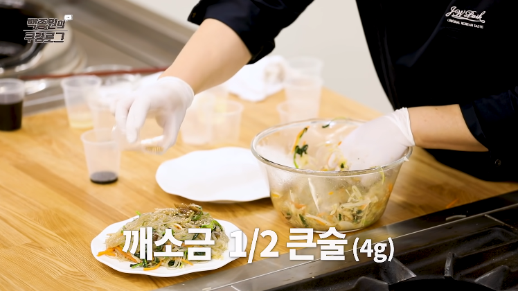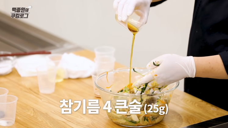 11. 참기름을 두른 후 완성접시에 담고 깨소금을 뿌리면 잡채 맛있게 만드는 방법 간단한 백종원 잡채 황금레시피가 완성됩니다.