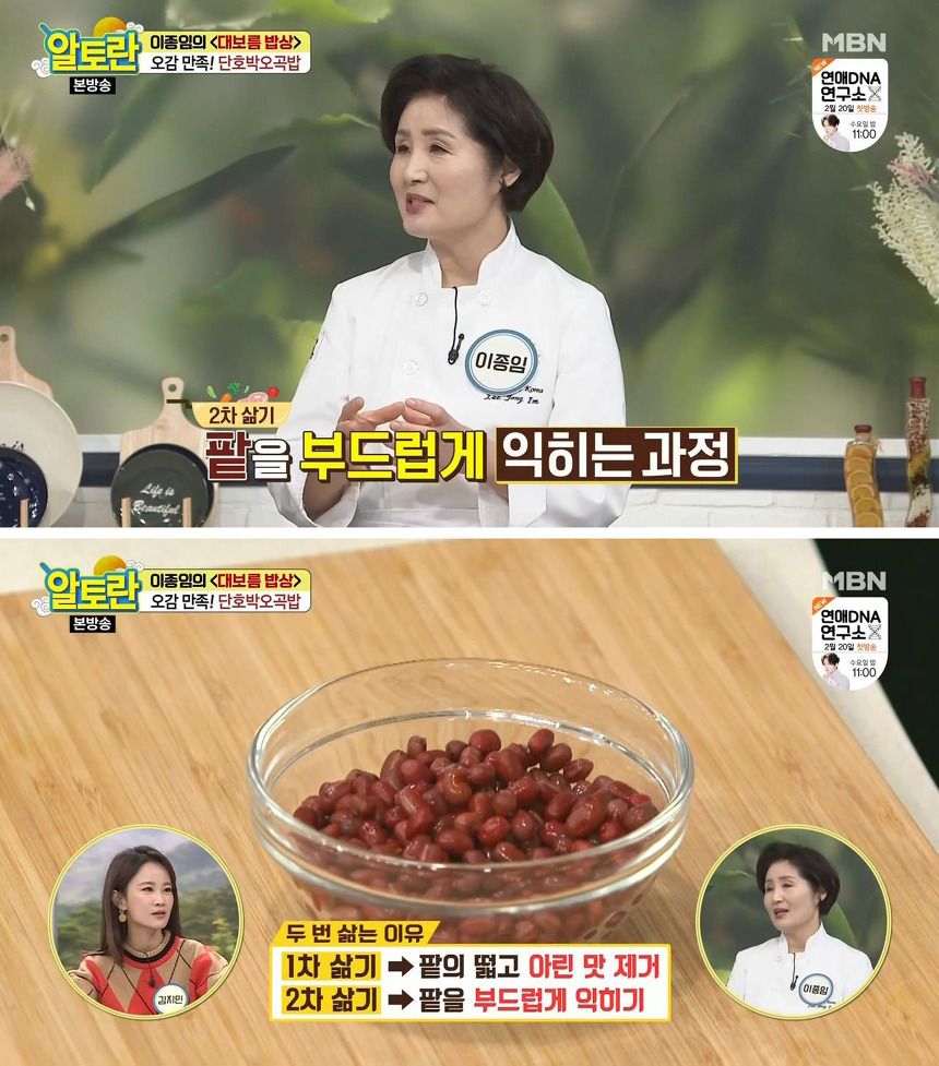여기서 오곡밥 만드는 방법 이종임 황금레시피의 비법 한가지! 헹군 후 팥을 한번 더 삶아주는 것이예요. 다소 귀찮게 여겨질수도 있지만 이렇게 팥을 두 번 삶으면 팥의 떫고 아린 맛도 제거하고 팥을 부드럽게 익혀주기 때문이랍니다.