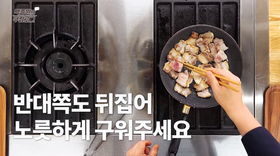5. 굽는 과정에 삼겹살에서 기름이 많이 나올 수가 있어요, 돼지기름은 적당히 덜어 빼주시는게 좋다네요.