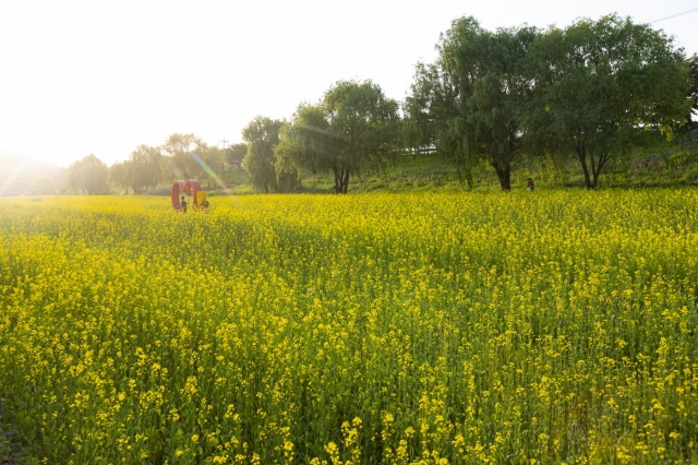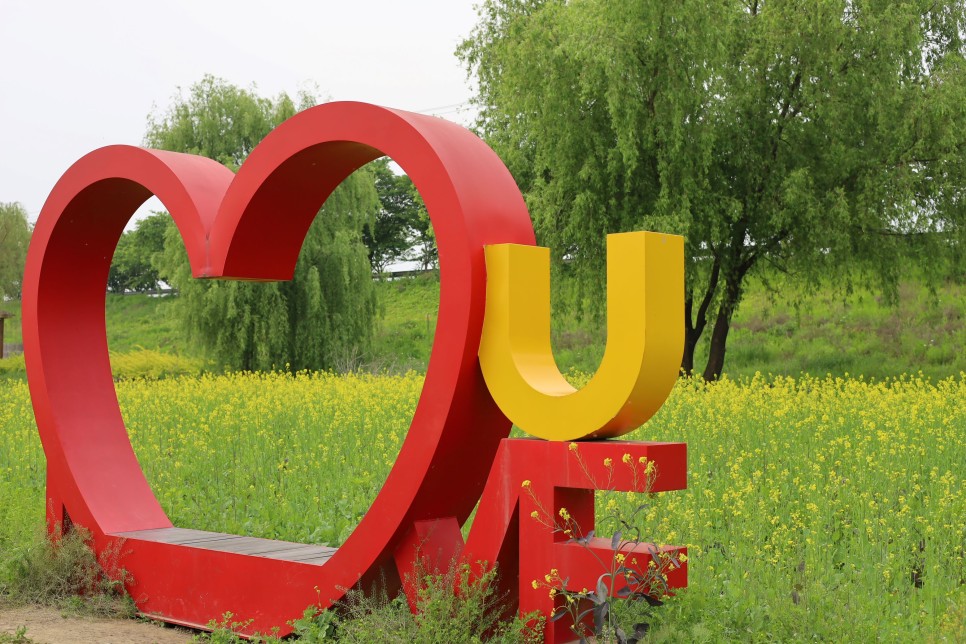유채꽃밭 사이에는 포토존도 마련되어 있어 노란 유채꽃 물결을 배경으로 봄날의 추억도 남기실 수 있어요.