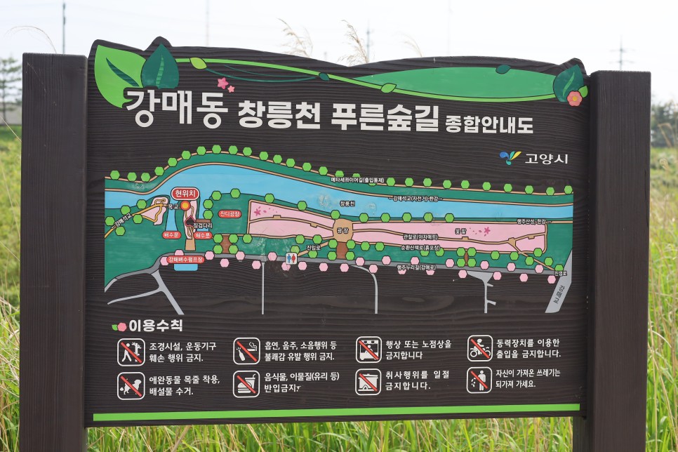 하지만 창릉천 푸른숲길은 산책로로 길이가 꽤 되어 걷기를 좋아하시는 분이라면 산책길을 따라 가며 끝없이 펼쳐져있는 유채꽃을 구경하시는 것도 좋을 것 같습니다. 산책길을 따라 중앙광장까지 다다르게 됩니다