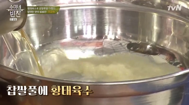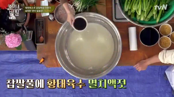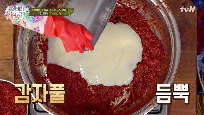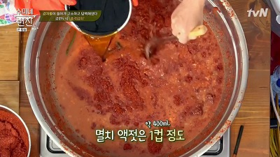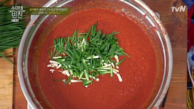 3. 이제 총각김치 양념을 만들 차례인데요, 김수미쌤은 총각김치를 만들기 전에 먼저 갓김치를 만드셨기 때문에 남은 양념을 활용하였어요.