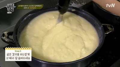 먼저 감자를 맛있게 삶은 뒤 삶은 감자를 부드럽게 으깨어 잘 끓여 주셔야 해요.