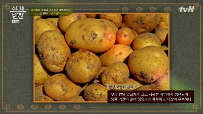 이번 총각김치 맛있게 담는법 김수미 총각김치 황금레시피에서는 특히 평창 고랭지 감자를 사용했는데요, 평창 고랭지 감자는 낮과 밤의 일교차가 크고 서늘한 지역에서 자랐기 때문에 생육 기간이 길어 영양소가 풍부하고 식감이 우수하다는 장점이 있답니다.