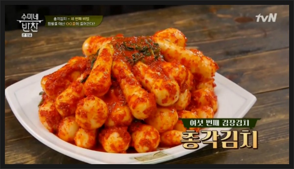 총각무를 고르실 때는 밑둥이 윗부분보다 굵고 단단하며 크기가 고른것이 좋은 것이라고 하는데요, 무청은 연하고 길이가 짧막한 것을 고르시는게 좋아요. 또한 총각무는 저온 관리가 필요하므로 4°C로 저장하셔야 하는데 만약 냉장고를 이용하지 못할 경우에는 신문지에 싸서 베란다에 두고 얼지 않도록 하면 된다고 하니 참고하시기 바래요. 총각김치 맛있게 담는법 김수미 총각김치 황금레시피로 맛있게 밥 한그릇 잘 차려 드시기 바래요.