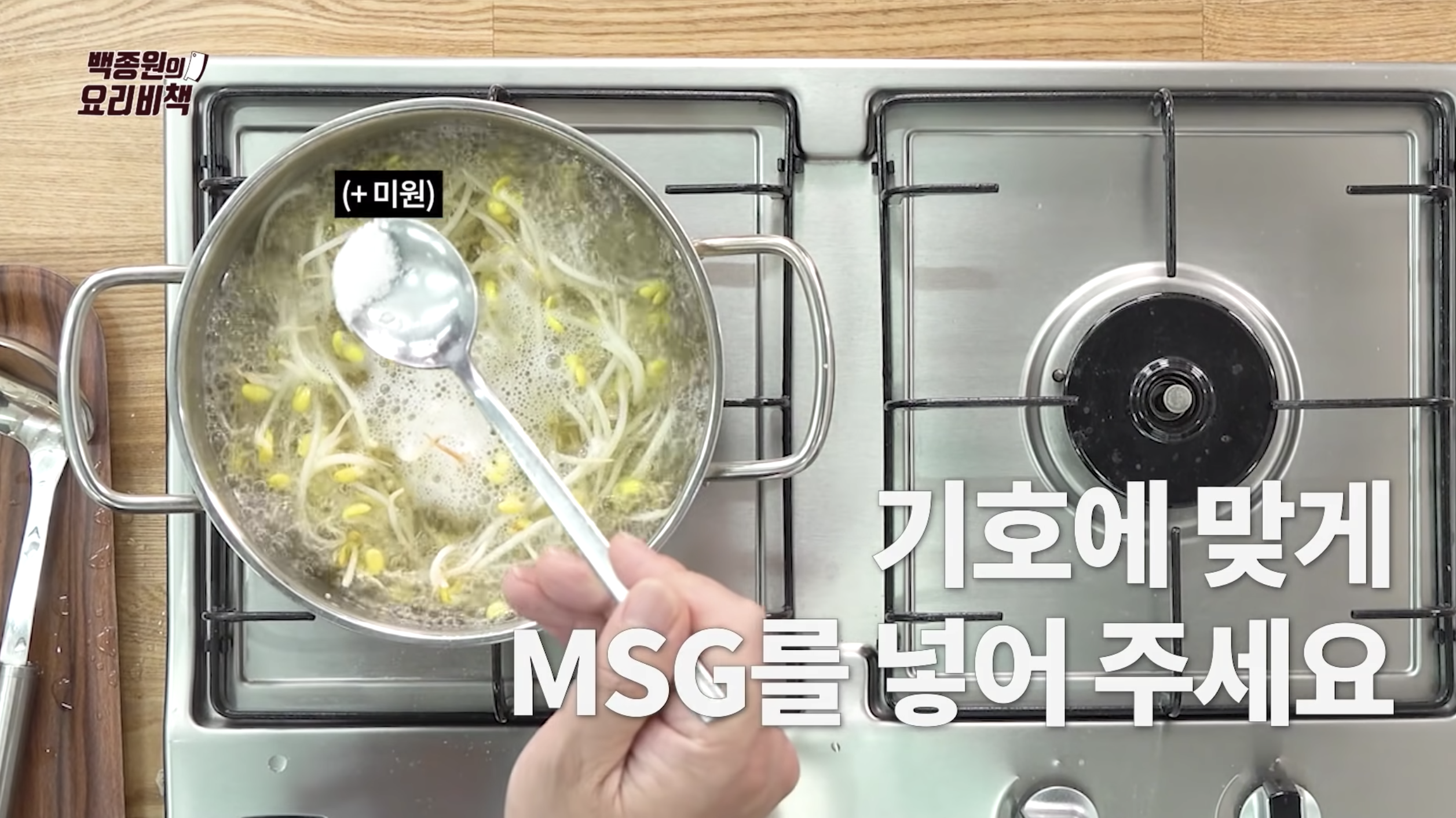 여기서 콩나물국 맛있게 끓이는 법 포인트 하나가 공개 되었는데 바로 미원입니다!