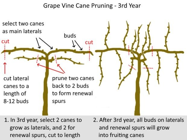 5. 포도나무는 매년 가지치기를 해야 합니다. 가지치기는 겨울철에 잎이 모두 떨어진 후에 하며, 목적에 따라 다르게 할 수 있습니다. 일반적으로는 결실한 가지와 병든 가지, 가늘고 약한 가지, 서로 겹치거나 방해되는 가지 등을 제거하고, 우수한 가지를 남겨서 육성합니다.