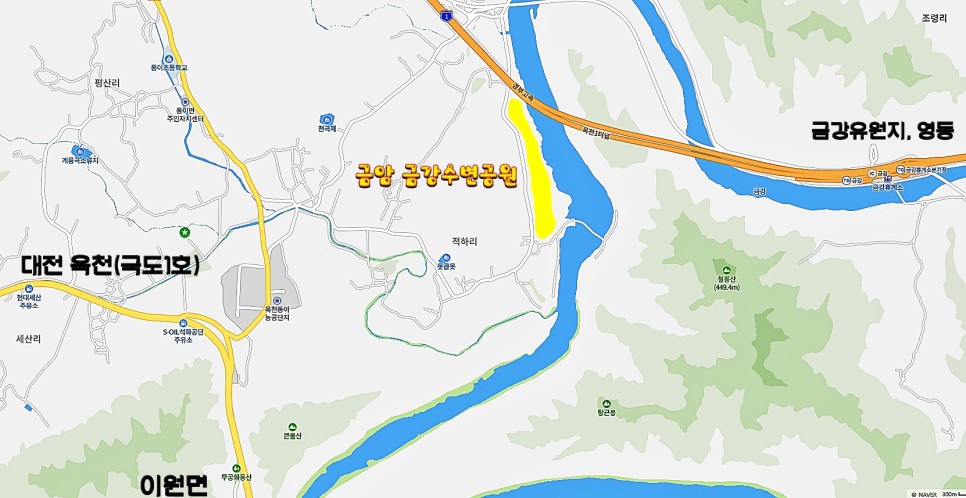 옥천 유채꽃 밭은 경부고속도로 금강2교 아래에 자리하고 있는데요, 차량 출구에서 도로를 따라 약 1km 이동하면 입구가 나옵니다.