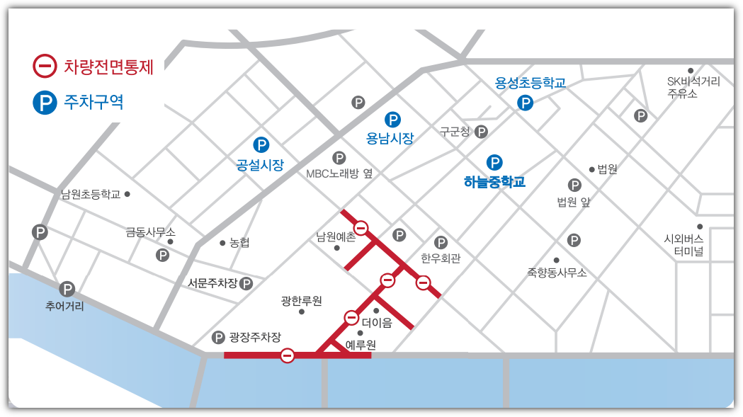 임시로 운영되는 주차장은 용성초 / 하늘중 / 추어 3가 ~ 금동 A / 노암동 / 함파우 / 부영 5차 / 남진빌라 등입니다. 용성초와 하늘중은 26일부터 주차가 가능하다고 하구요,
