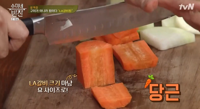 3. 무와 당근을 LA갈비 크기로 잘라줍니다.