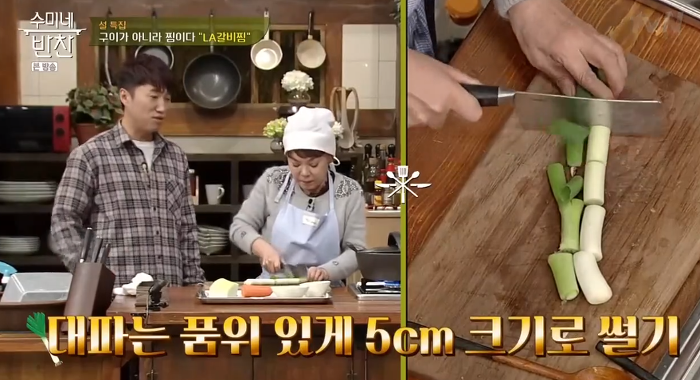 19. 대파는 5cm 크기로 썰어 넣습니다.