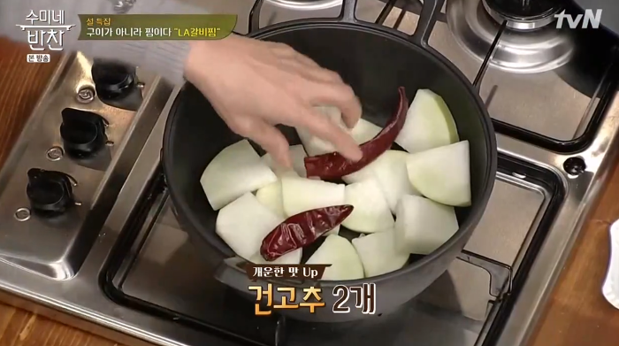 12. 개운한 맛을 위해 건고추 2개 넣어줍니다.