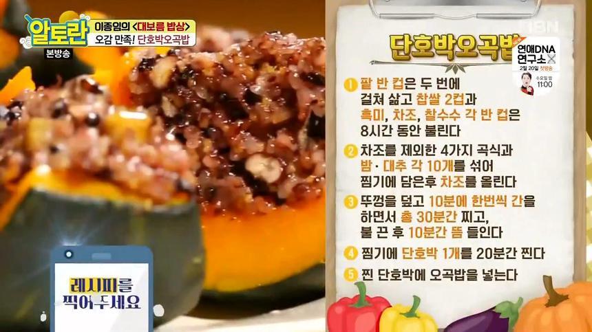 여기서 정월대보름 오곡밥 만드는 방법 재료 이종임 오곡밥 맛있게 찌는법의 비법, 바로 단호박과 오곡밥을 따로 찌는 것인데요, 단호박 속에 오곡을 넣고 익히면 시간이 너무 오래 걸리기 때문이라고 해요. 하루종일 익혀야 한다고 하네요. 따라서 오곡밥을 먼저 만든 후 단호박에 넣어주시는 것이 좋습니다.